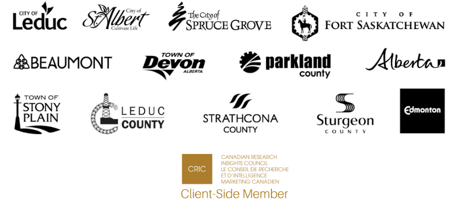 This survey is being sponsored by the City of Edmonton, the City of Leduc, the City of St. Albert, the City of Fort Saskatchewan, the City of Spruce Grove, the City of Beaumont, the Town of Devon, the Town of Stony Plain, Parkland County, Strathcona County, Leduc County, Sturgeon County, and the Alberta Transportation and Economic Corridors (ATEC).